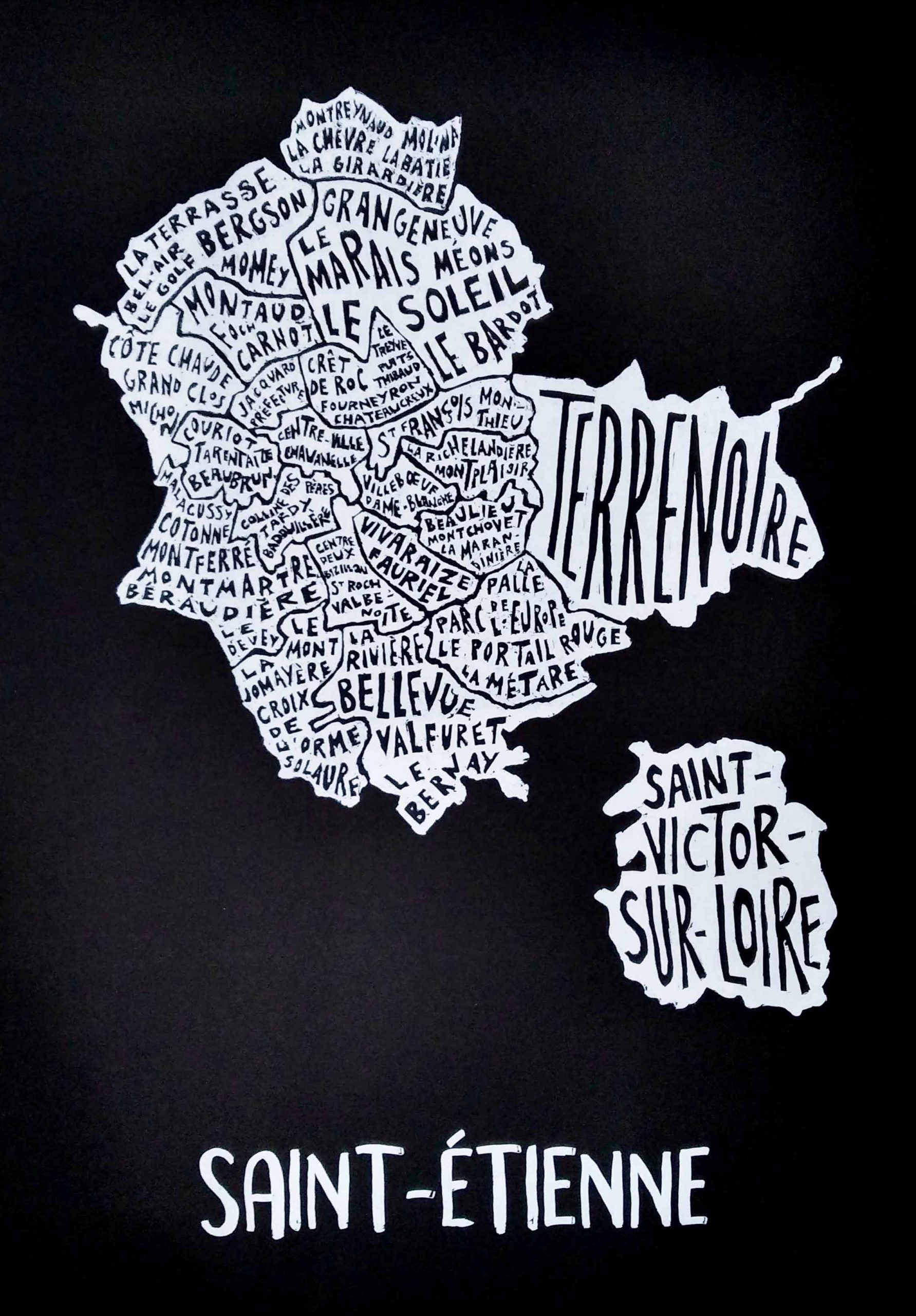 Ancrée à Saint-Étienne, Mary Poppink revendique son attachement à la ville avec humour et tendresse. Certaines de ses créations célèbrent l’esprit stéphanois — entre chauvinisme joyeux et auto-dérision.