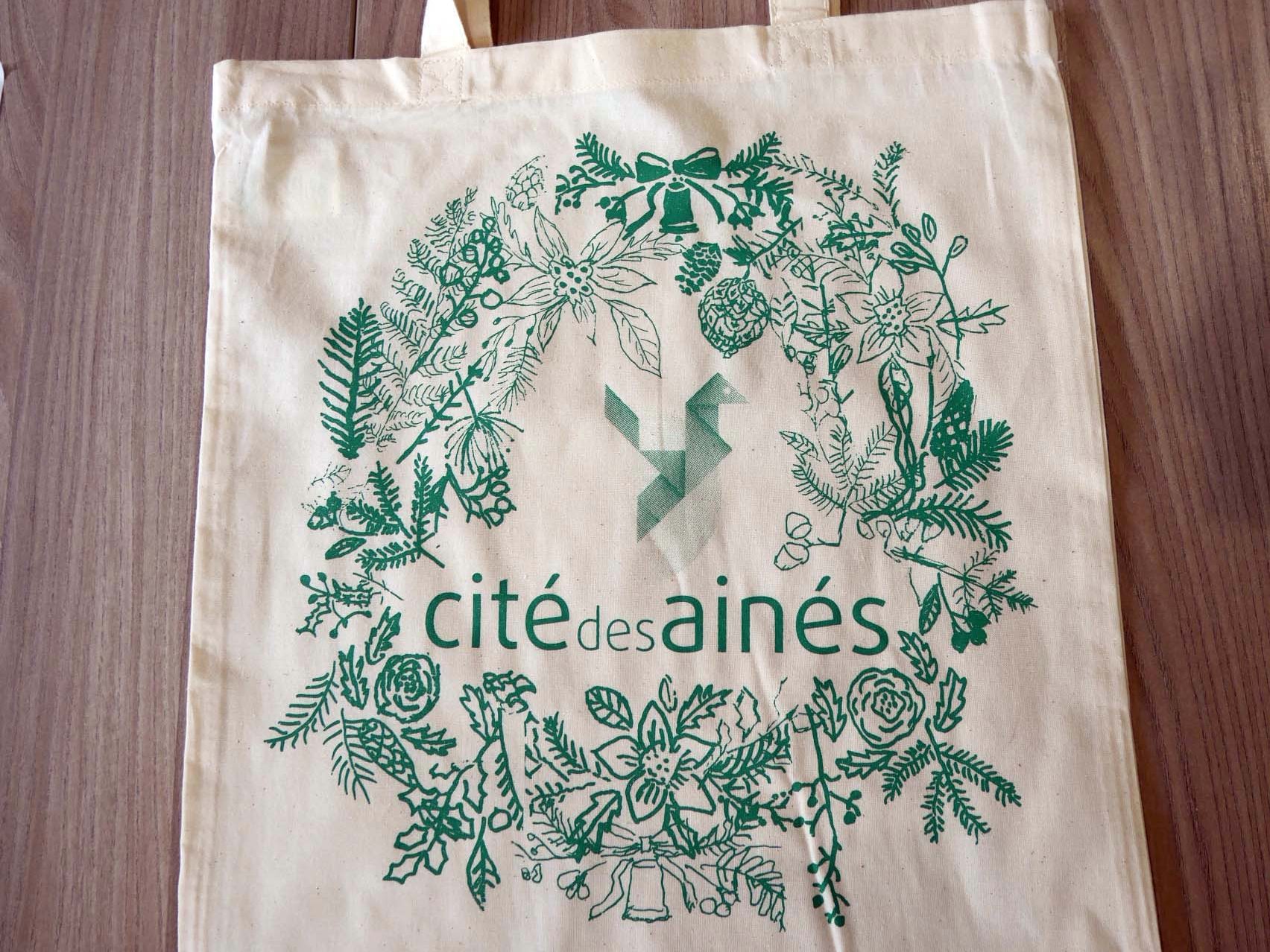 Chaque résident imprime son sac en tissu à partir du visuel collectif réalisé lors de la première séance.