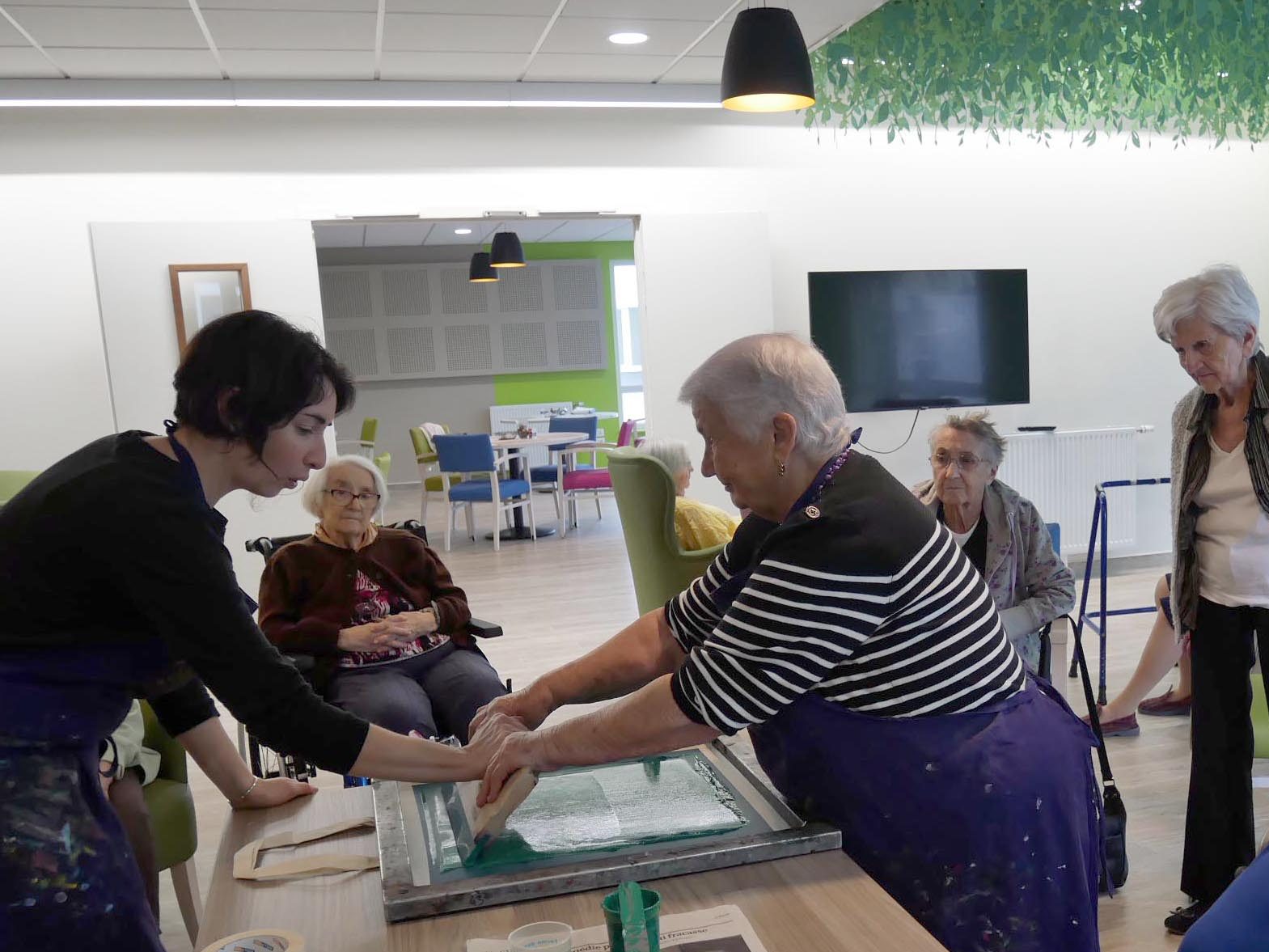 Organiser des ateliers de graphisme et de sérigraphie artisanale auprès des personnes âgées permet de stimuler la créativité, la motricité fine et le lien social, tout en offrant une activité ludique et valorisante.